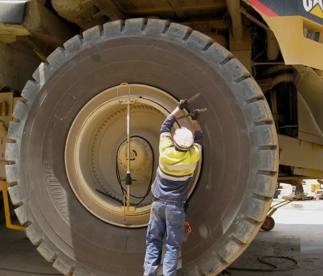 Tuff designed the Lock Ring Catcher to overcome the SAFETY problem created when releasing a one piece Lock Ring from an OTR wheel rim and letting it fall in an uncontrolled manner to the floor. Tuffs’ unique design makes the Lock Ring Catcher lightweight at under 10kg for most models. It can be loaded and secured into a wheel rim within seconds making it the quickest lightest tool available to improve the safety of Lock Ring Removal and Fitting.