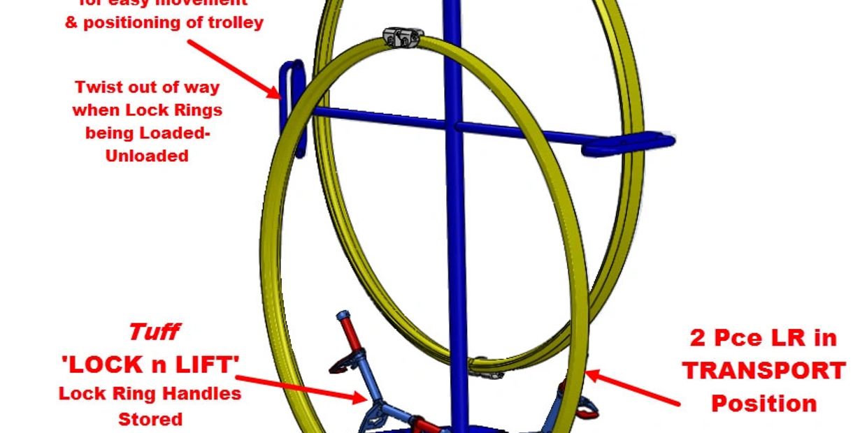 Designed to accommodate 2 piece wheel locking rings during transport to site and installation. The unique Load and Unload mounting position assist the maintenance fitter with manual handling the locking ring during removal and installation.